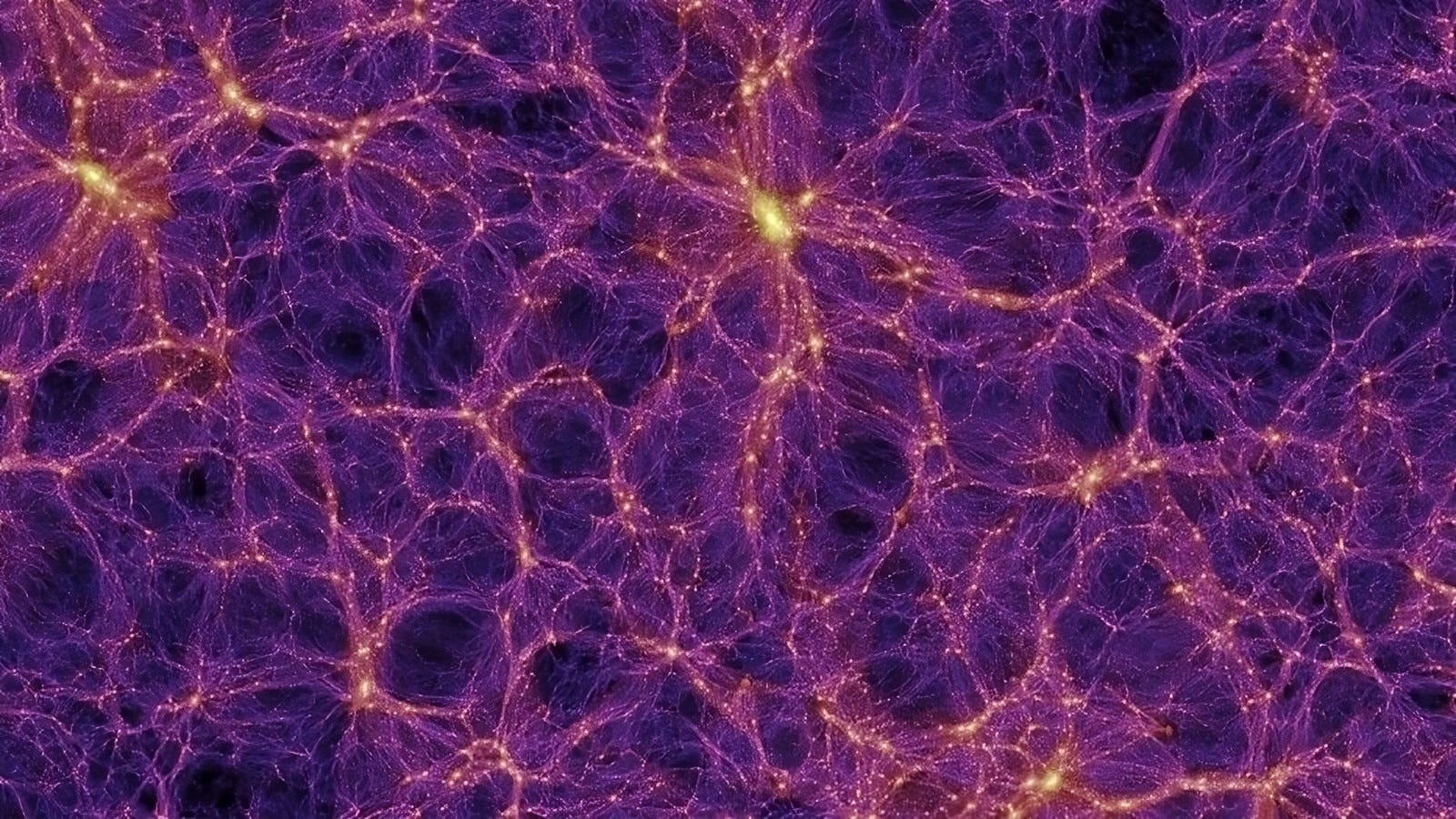 “A model of the cosmic web, showing luminous galaxies clustering where gas filaments meet.” Is the Universe a giant fractal? (Credit: ESA / Springel et al., Virgo Consortium)